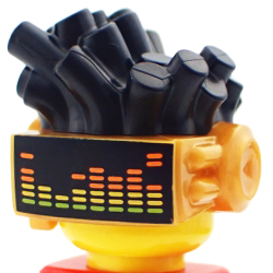 | Item Name | Minifigure, Hair Tubes/Cables and Pearl Gold Robot VR Visor Headset with Music Equalizer Pattern |