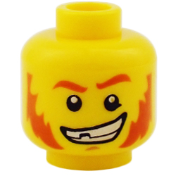 | Item Name | Minifigure, Head Dark Orange Eyebrows and Mutton Chops, Medium Nougat Chin Dimple, Lopsided Open Mouth Smile with Teeth and Chipped Tooth Pattern |