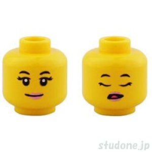 | Item Name | Minifigure, Head Dual Sided Female Black Eyebrows and Eyelashes, Bright Pink Lips, Grin / Open Mouth with Coral Tongue, Sleeping Pattern |