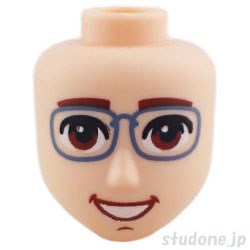 Item Name | Mini Doll, Head Friends Male Large with Reddish Brown Eyes, Eyebrows and Chin Dimple, Open Mouth Smile with White Teeth and Sand Blue Glasses Pattern |