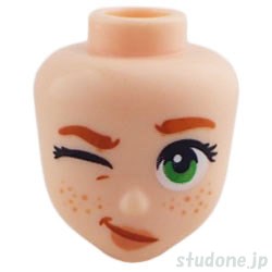 Item Name | Mini Doll, Head Friends with Dark Orange Eyebrows, Green Eyes, Right Wink, Nougat Lips and Freckles, Lopsided Grin Pattern |
