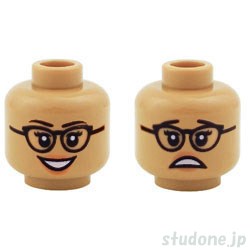 Item Name | Minifigure, Head Dual Sided Female Black Eyebrows, Glasses, Peach Lips, Open Mouth Smile / Scared Pattern |