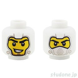 Item Name | Minifigure, Head Dual Sided Balaclava with Light Bluish Gray Details, Yellow Face, Black Eyebrows, Lopsided Open Mouth Smile with Teeth / Covered Mouth Pattern |