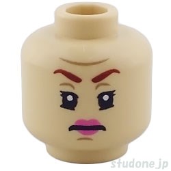 Item Name | Minifigure, Head Female Reddish Brown Eyebrows, Dark Tan Chin Dimple and Forehead Crease, Dark Pink Lips, Frown Pattern |