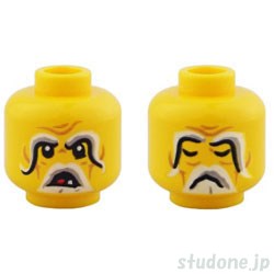 Item Name | Minifigure, Head Dual Sided Light Bluish Gray and White Eyebrows and Goatee, Wrinkles, Closed Eyes and Frown / Open Mouth with Tooth Pattern |
