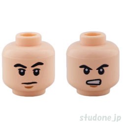 | Item Name | Minifigure, Head Dual Sided Black Eyebrows, Medium Nougat Chin Dimple, Neutral / Angry with Bared Teeth Pattern |