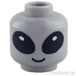| Item Name | Minifigure, Head Alien with Large Black Eyes with White Glints, Grin Pattern |