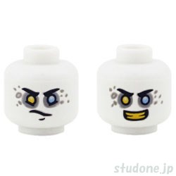 | Item Name | Minifigure, Head Dual Sided Black Eyebrows, Yellow Right Eye, Bright Light Blue Left Eye, Light Bluish Gray Eye Shadow and Spots, Open Mouth Smile with Teeth / Determined Pattern |