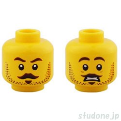 | Item Name | Minifigure, Head Dual Sided Male Dark Brown Eyebrows, Moustache, Soul Patch, and Beard Stubble, Worried Open Mouth with Teeth / Stern Pattern |