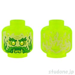 | Item Name | Minifigure, Head Alien Ghost with Yellowish Green Face, Glasses, Angry and Flames in Back Pattern |