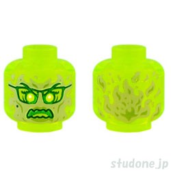 | Item Name | Minifigure, Head Alien Ghost with Yellowish Green Face, Glasses, Angry and Flames in Back Pattern |