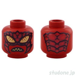 | Item Name | Minifigure, Head Alien Insect with Gold Eyes with Dark Orange Dots, Exoskeleton Segments and Mandibles with Red Spikes, Angry Bared Sharp Teeth Pattern |
