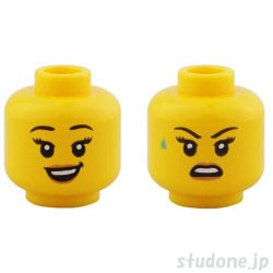 | Item Name | Minifigure, Head Dual Sided Female, Black Eyebrows, Peach Lips, Smile Showing Teeth / Open Mouth with Sweat Drop Pattern |