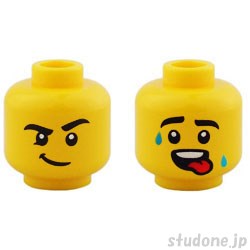 | Item Name | Minifigure, Head Dual Sided, Black Eyebrows, Lopsided Smirk / Sweat Drops and Red Tongue Pattern |