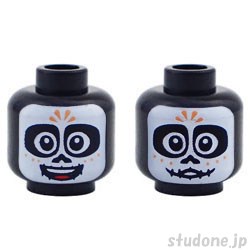 | Item Name | Minifigure, Head Dual Sided White Face Mask, Large Eyes and Nose, Nougat Dots, Stitched Mouth, Open Mouth Smile / Slight Smile Pattern |