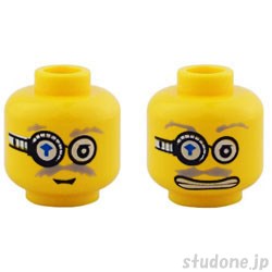 | Item Name | Minifigure, Head Dual Sided Power Miner Glasses with Blue Arrow, Gray Eyebrows, Moustache, Mouth Closed / Mouth with Teeth Pattern |