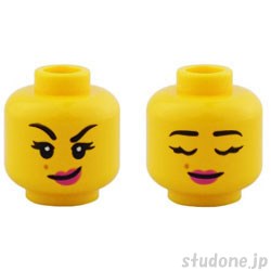| Item Name | Minifigure, Head Dual Sided, Black Eyebrows, Medium Nougat Mole, Dark Pink Lips, Lopsided Grin / Closed Eyes Pattern |